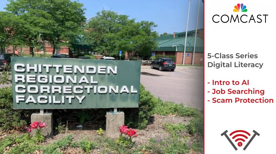 This is a 5-class series being provided each month to the Chittenden County Regional Correctional Facility. Each class focuses on job excellency for when the inmates reintegrate into society. Introducing AI – Monday, April 20th 2:30-4pm AI Tools – Monday, May 18th 2:30-  4pm                                                                                                                                                 Protecting Yourself from Scams – Friday June 26th 1:30-3pm Understanding Online Job Searches – Friday July […]