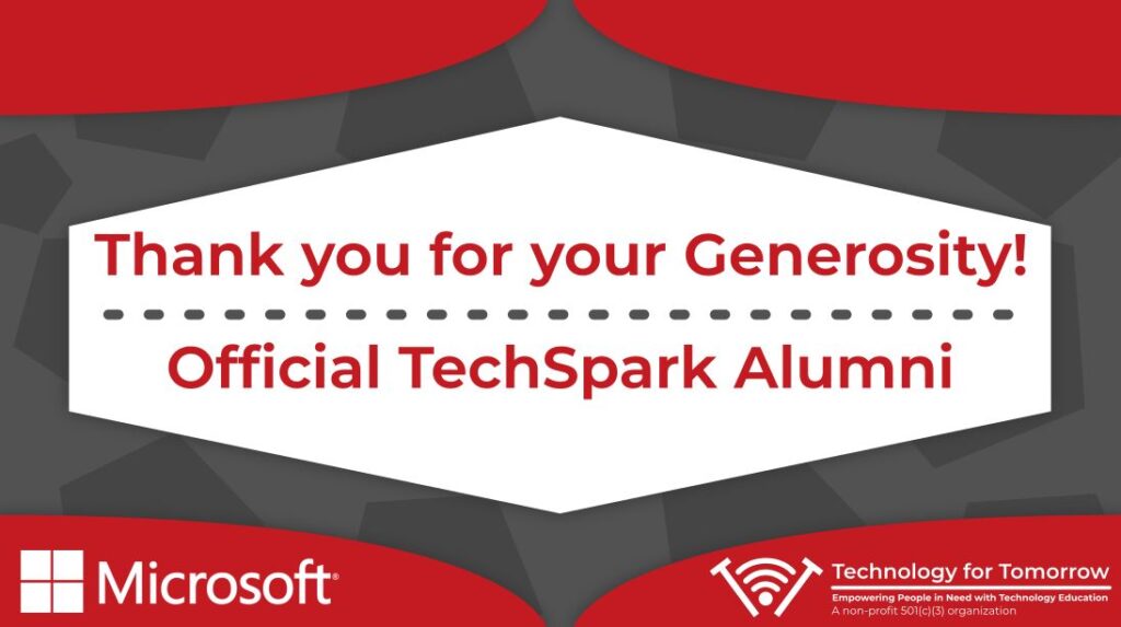 This week, we are happy to announce that we have been awarded funding from Microsoft TechSpark! Thanks to the work of Maliki LaForce, who continues to share his knowledge and assist other TechSpark fellows, we have been added to TechSpark’s Fellowship Alumni Leadership Council.